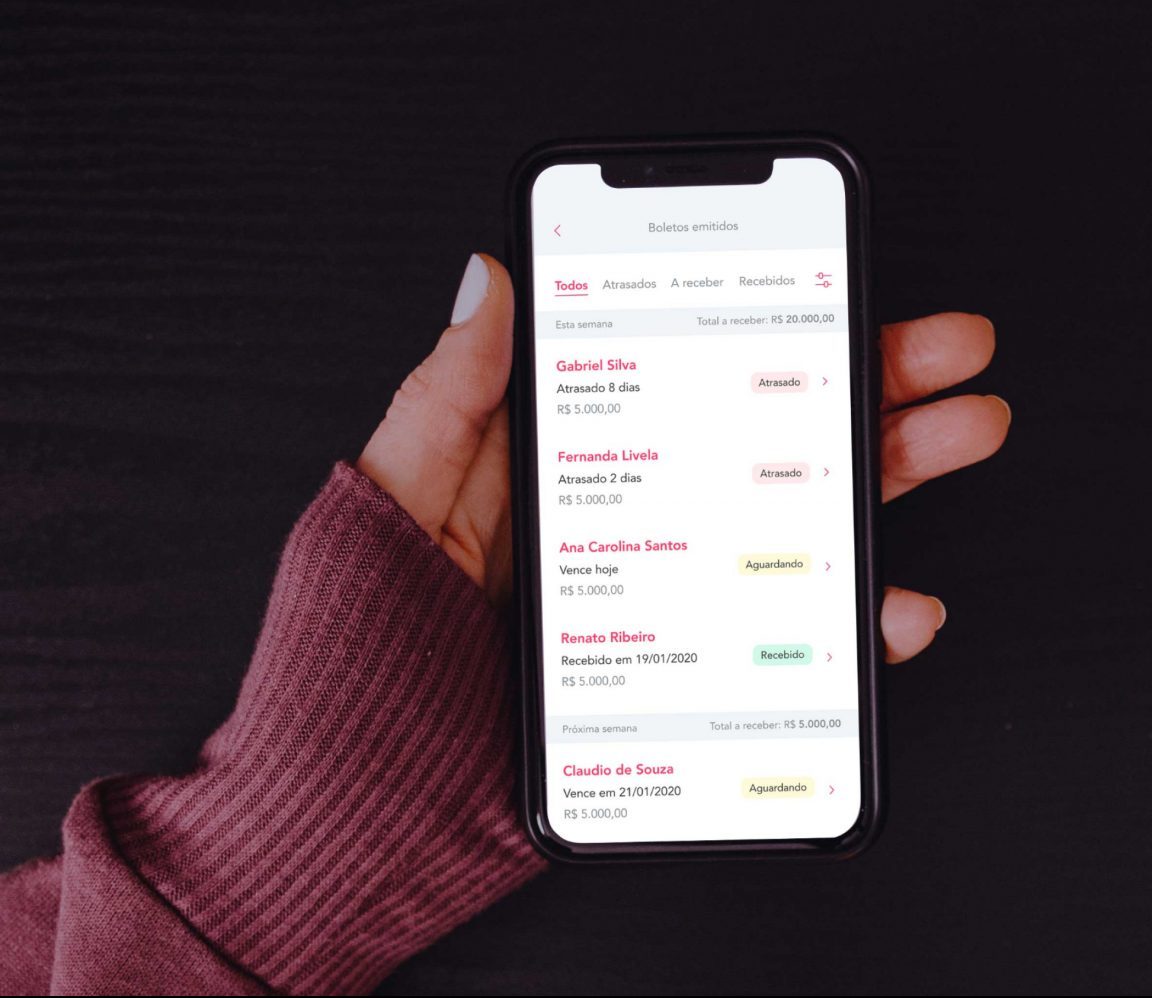 Acompanhe pelo app os boletos que estão abertos, o atrasados e os que já foram recebidos.